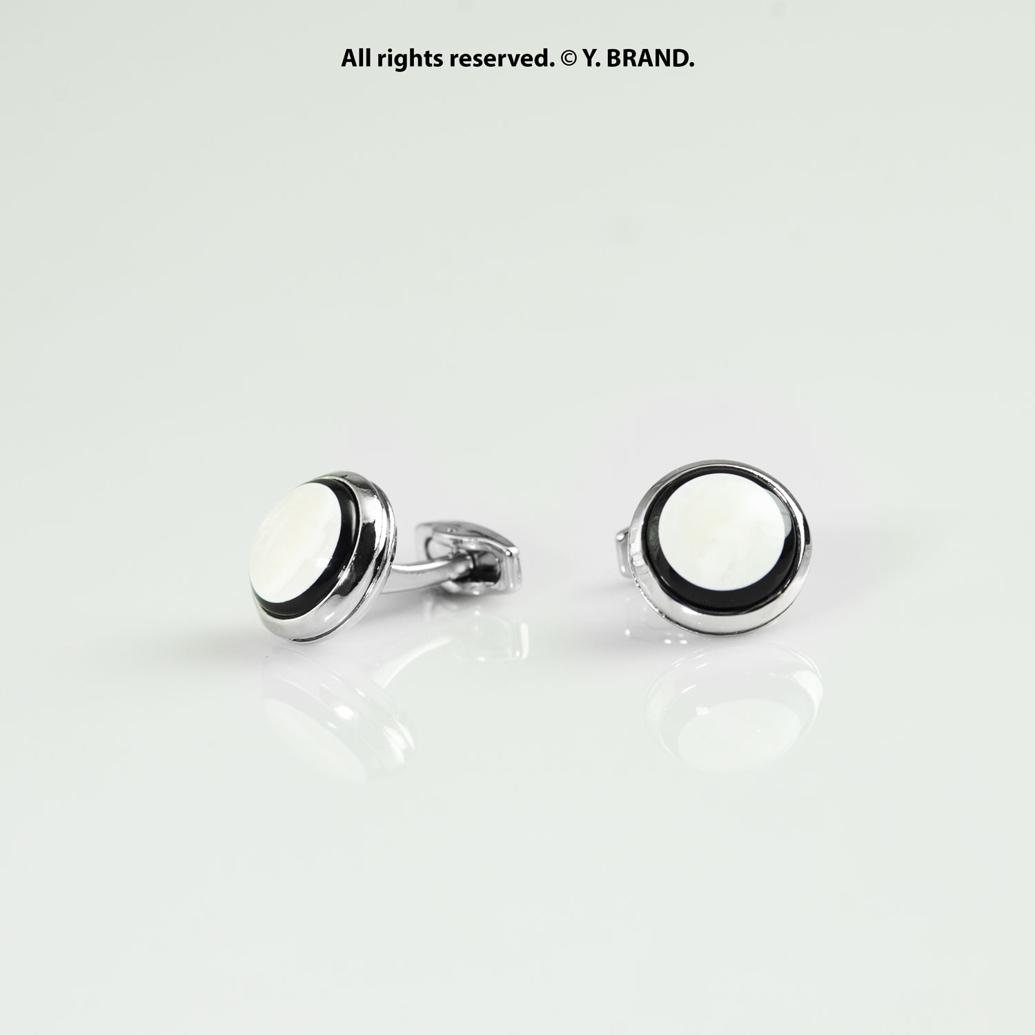 Silver & White Cufflink Classic Round – CL-0162