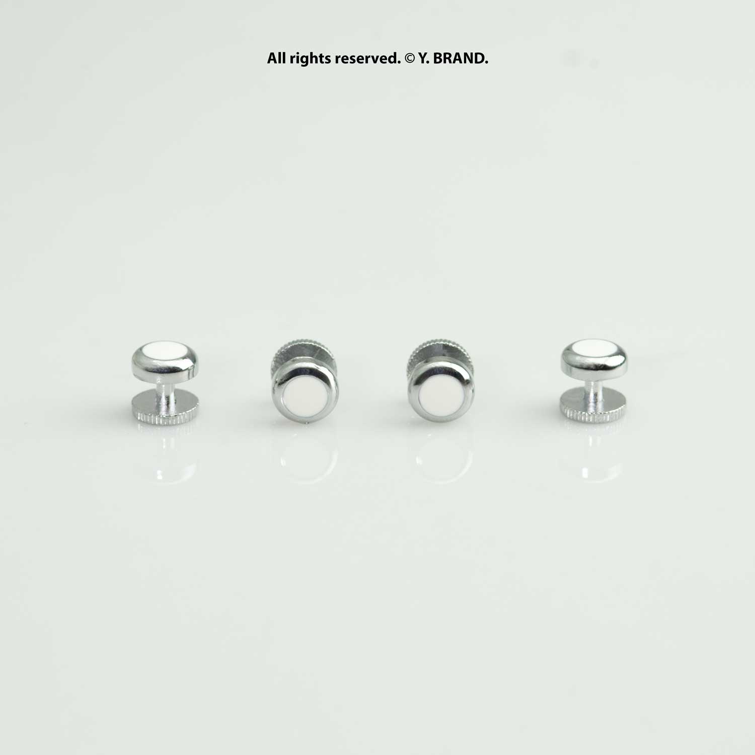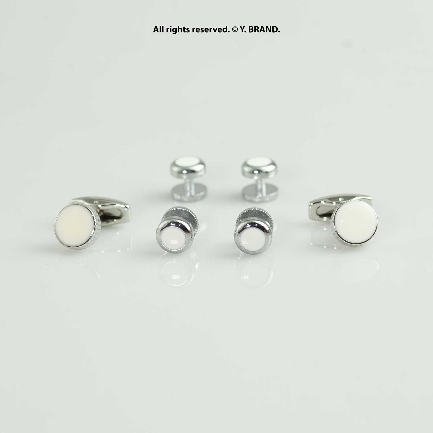 Silver & White Cufflink Set Classic Round Minimal Design – CLS-1014