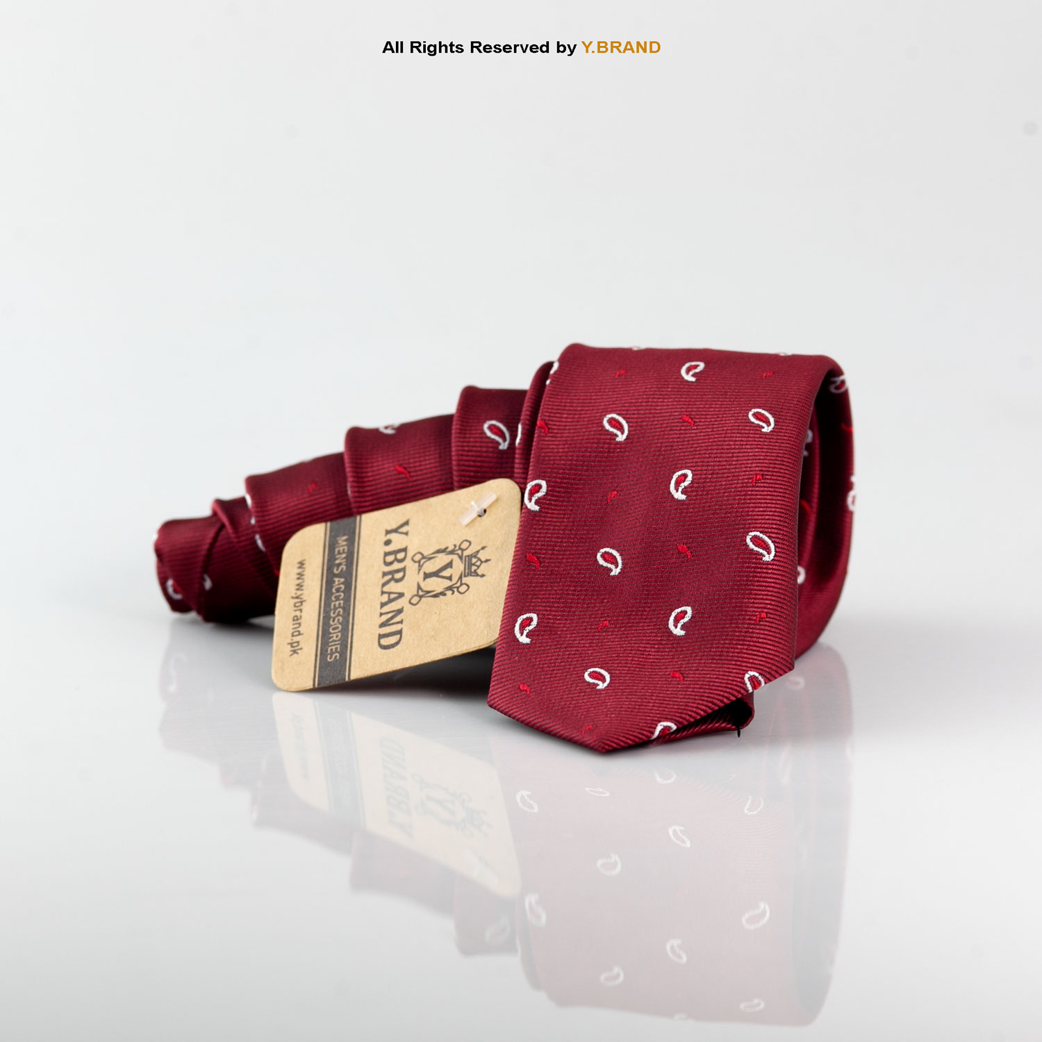 Slim Maroon Leaf Pattern Poly Necktie T-143