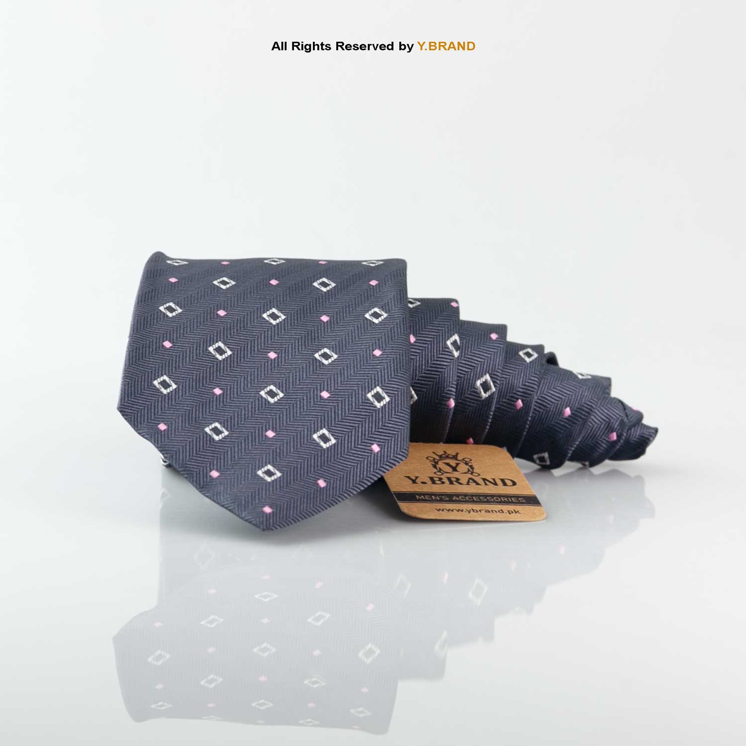 Stylish Dark Gray Dimond Pattern Necktie T-165