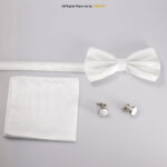 WHITE BOW TIE AND CUFFLINK SET-GIFT SET-BTS-013