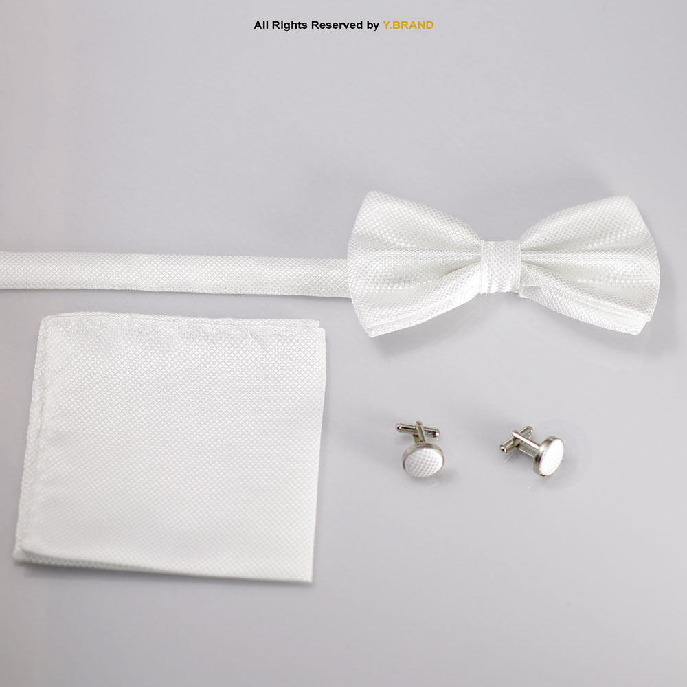 White is a color of gratitude, grace, and gentleness. This is an amazing set ever you can give to your loved ones. Bow ties are trending for occasions like weddings and anniversaries. The same fabric is used on cufflinks, Bow ties, and pocket squares for a picture-perfect look. 100% polyester fabric is used because it is one of the finest, flexible, shrinking-wrinkle-resistant. Strengthen your bonds with this enticing gift set.