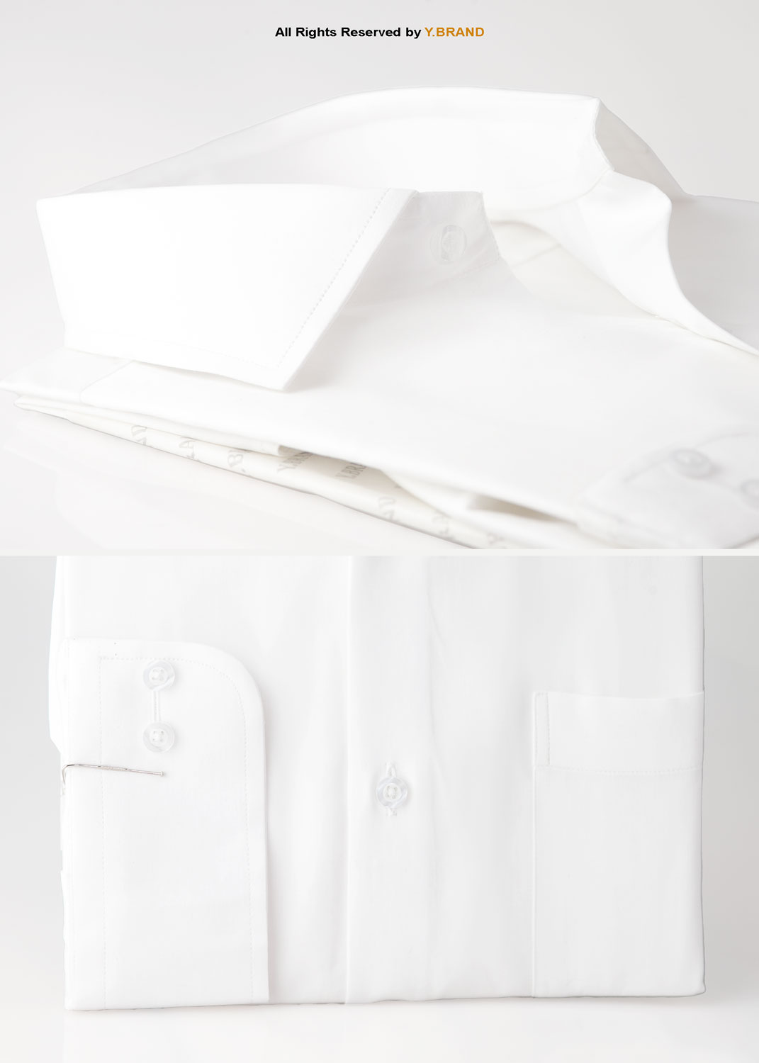 White cotton satin Five Spread Collar Classic shirt FS-1048