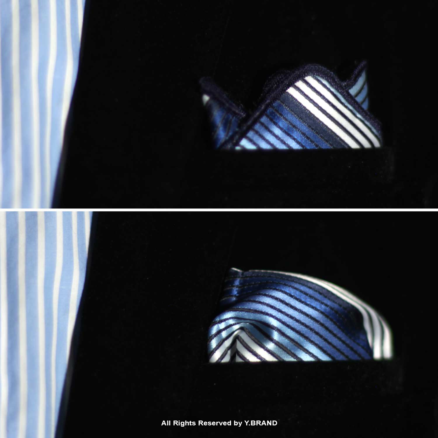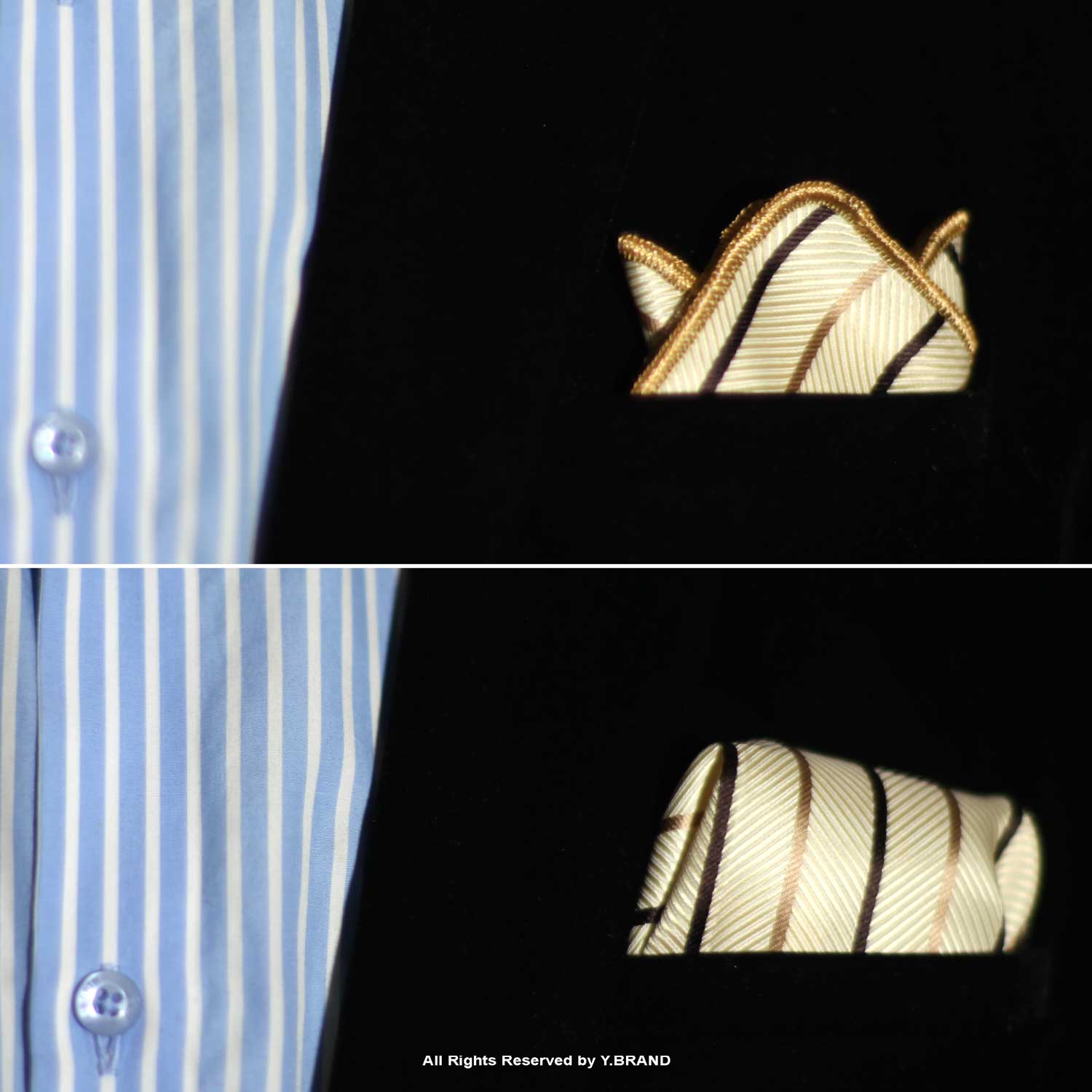 Y.BRAND-Collection of Striped Pocket Square with contrast Border PS-1045