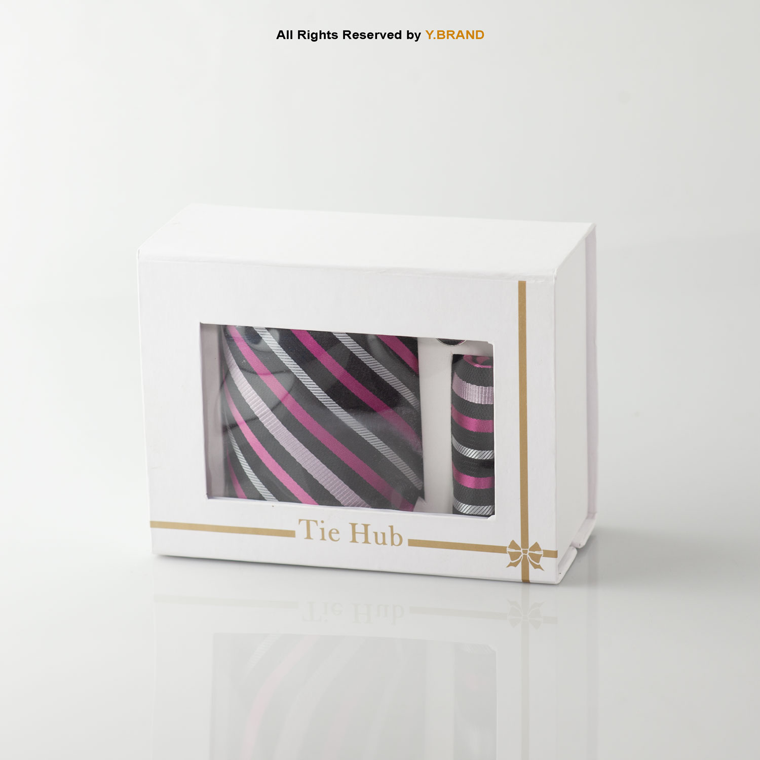 YBRAND-Classic Purple Strips Tie and Cufflink Gift Set-TS-1066