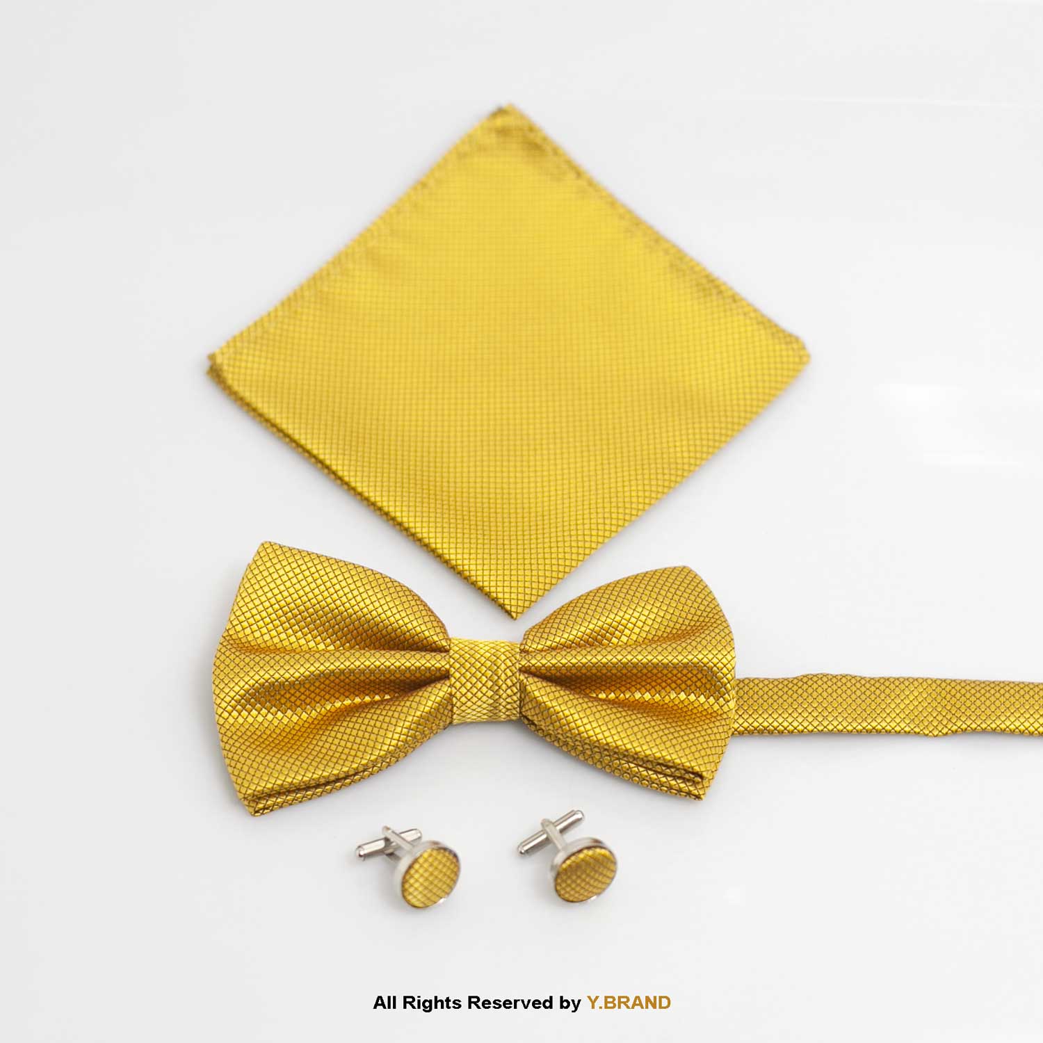 Yellow Gold is a color of gratitude, grace, and gentleness. This is an amazing set ever you can give to your loved ones. Bow ties are trending for occasions like weddings and anniversaries. The same fabric is used on cufflinks, Bow ties, and pocket squares for a picture-perfect look. 100% polyester fabric is used because it is one of the finest, flexible, shrinking-wrinkle-resistant. Strengthen your bonds with this enticing gift set.