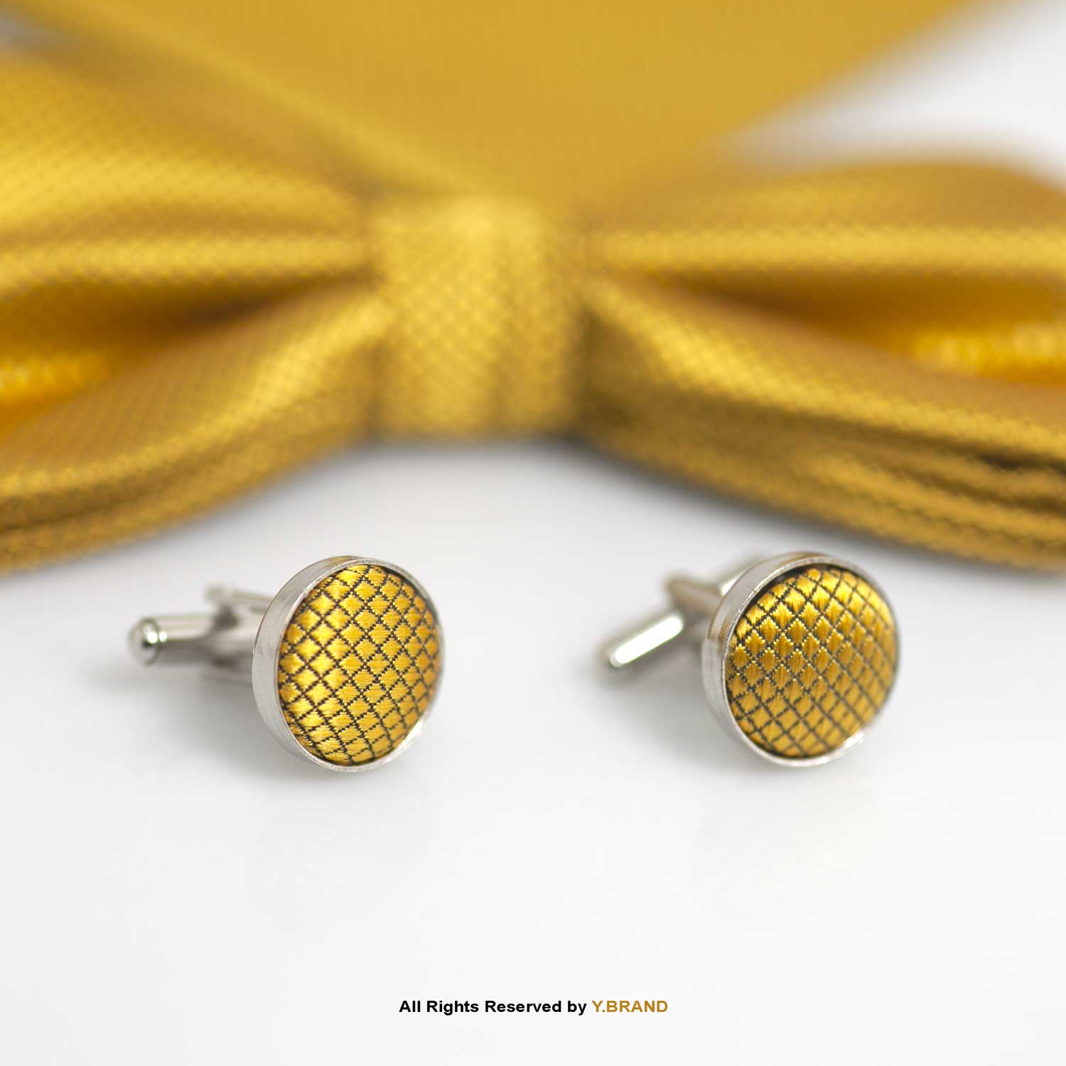 YELLOW GOLD BOW TIE AND CUFFLINK SET-GIFT SET-BTS-008